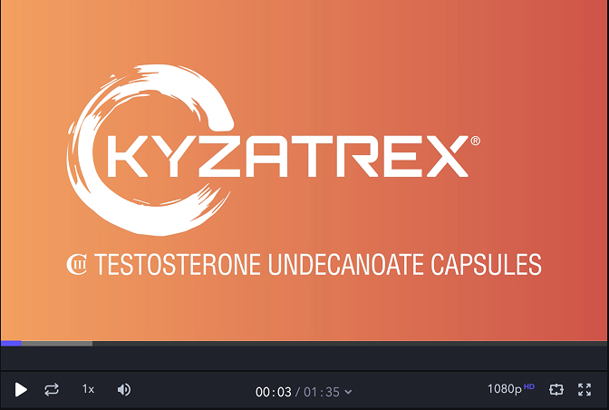 KYZATREX® (testosterone undecanoate) capsules, CIII, is indicated for testosterone replacement therapy in adult males for conditions associated with a deficiency or absence of endogenous testosterone:
